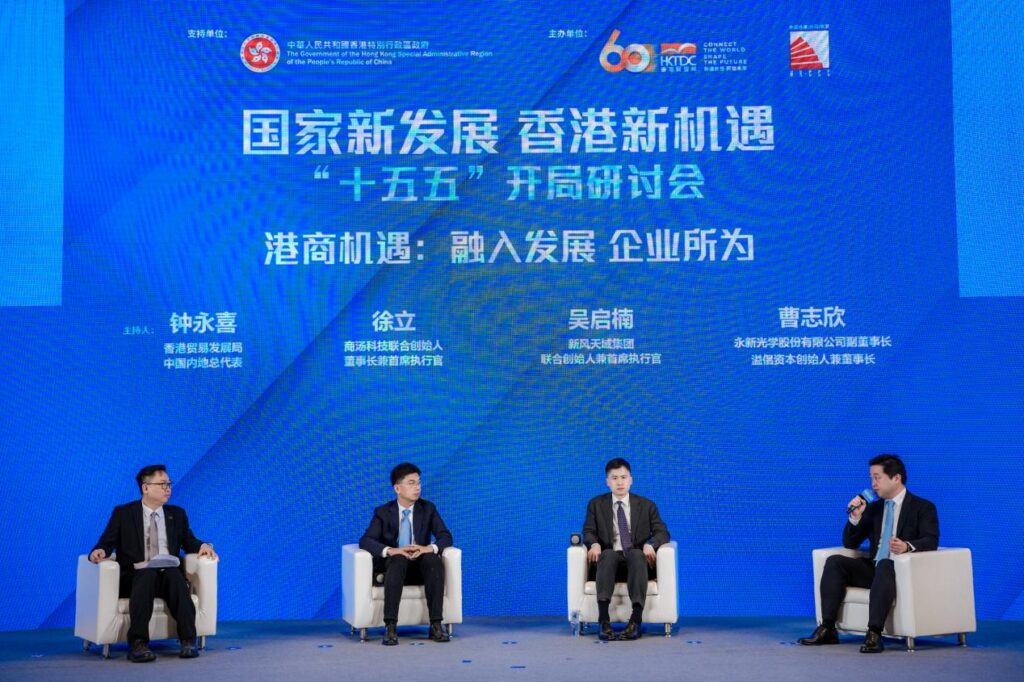 作為AI企業代表,商湯科技董事長兼首席執行官徐立(左二)參與專題研討環節「港商機遇:融入發展 企業所為」